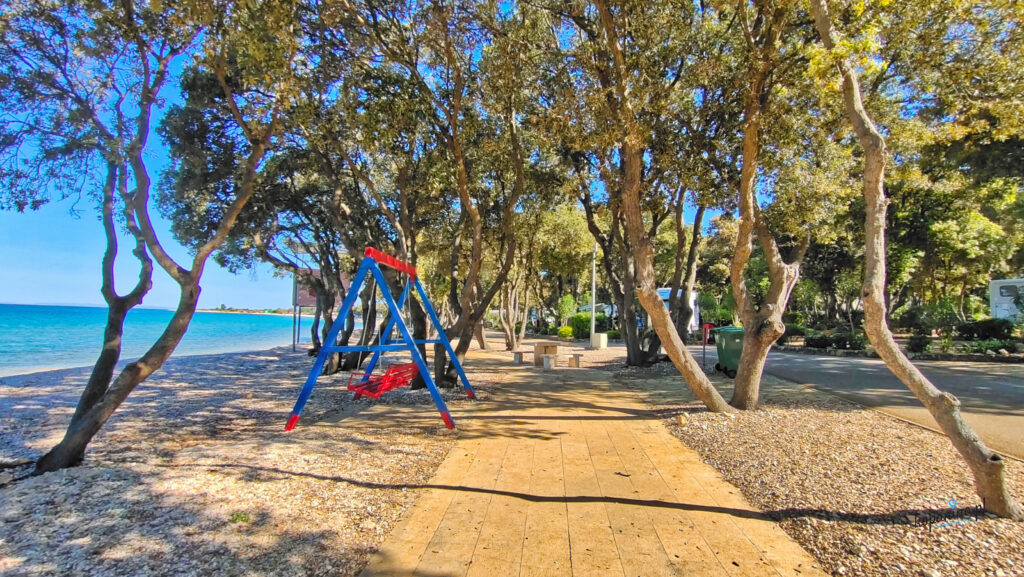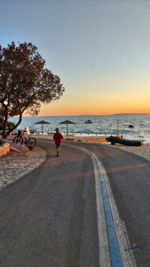 Camping Straško jest po prostu ładny, wizualnie przyjemnie się tam spędzało czas. A to bardzo ważne, bo jak otoczenie nie męczy, to o wiele lepiej się odpoczywa. My chętnie po prostu sobie po terenie spacerowaliśmy, szczególnie promenadą nad samym morzem. A Młody szalał na hulajnodze, bo delikatnie wzniesienia dawały radość z jazdy i rozwianych włosów. Taki przyjemny rodzinny relaks.