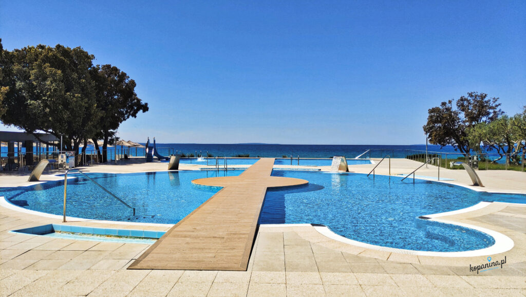 Strefa basenowa ogólnie jest raczej mała, jest jeden niewielki głębszy basen, dwa płytsze ze zjeżdżalnią czy jacuzzi i mały brodzik dla dzieci z wodnym placem zabaw. Woda nie jest podgrzewana. Większość ludzi wybiera raczej piękną plażę oznaczoną błękitną flagą, więc w strefie basenowej nie ma tłumów.