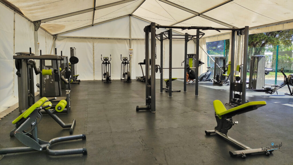 Ta strefa jest dość rozbudowana, praktycznie w całości wliczona w cenę (oprócz padla). Znajdziecie tam boisko do piłki nożnej, boiska do siatkówki plażowej, siłownię, korty tenisowe. W wakacje odbywa się tam sporo zorganizowanych grupowo aktywności, w maju bez problemu można było z nich korzystać w każdej chwili. Odpłatnie można też wypożyczyć rowery czy dzieci mogą poszaleć na elektrycznych quadach.