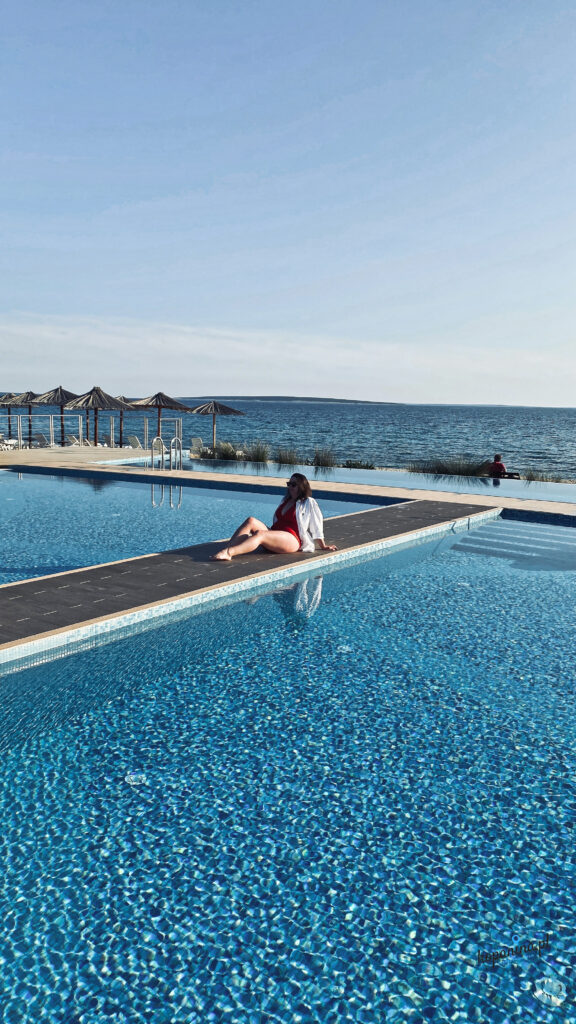 To co robi naszym zdaniem największe wrażenie, to tamtejszy widok na Adriatyk. Wyobraźcie sobie, że relaksujecie się w wodzie, a jak podniesiecie głowę to macie przed oczami absolutny bezkres morza. Drugim kluczowym elementem jest fotogeniczność tez strefy. Jeśli macie ochotę zrobienia sobie pięknego zdjęcia z wakacji, to można powiedzieć że tutaj tło robi robotę, a zdjęcie „robi się samo”.