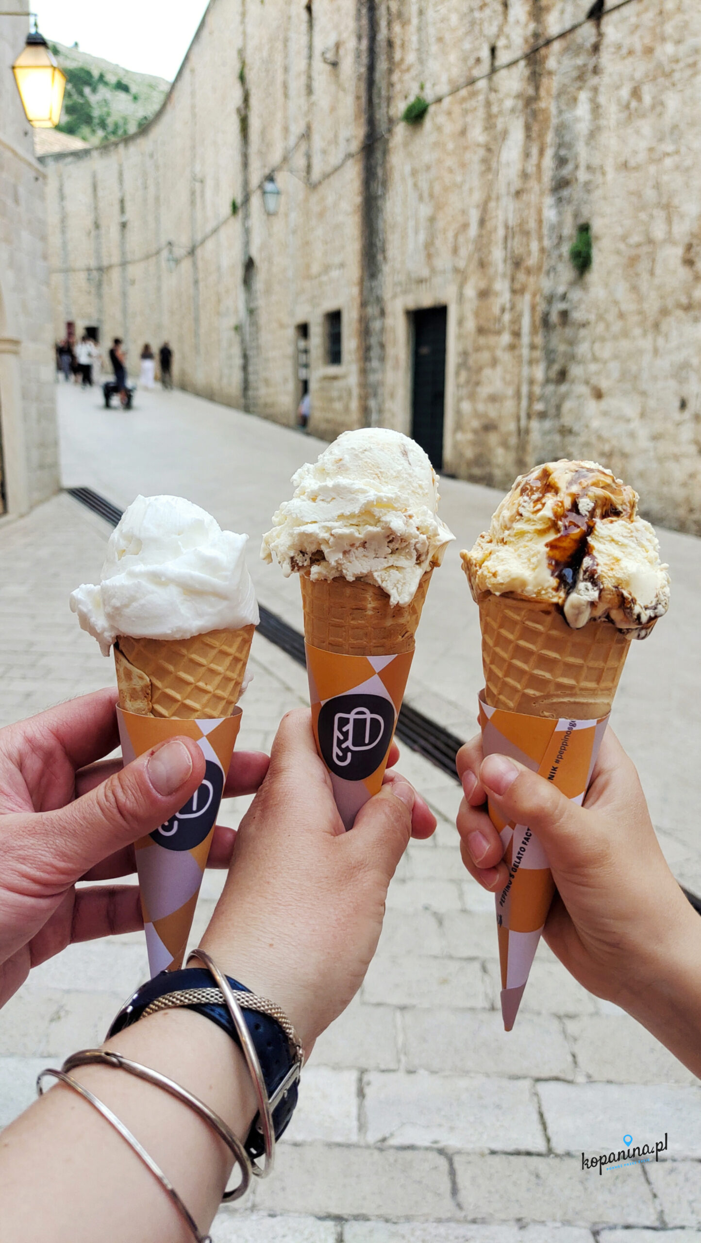 W okolicy bramy Ploce warto jeszcze zjeść pyszne lody. Są tam często kolejki, ale idzie sprawnie. Lodziarnia nazywa się Peppino’s Gelato Garden. Lody tanie nie są, ale w upalny dzień przyjemnie się nimi można ochłodzić. Niektóre są bardzo słodkie, więc uważnie wybierajcie smaki.