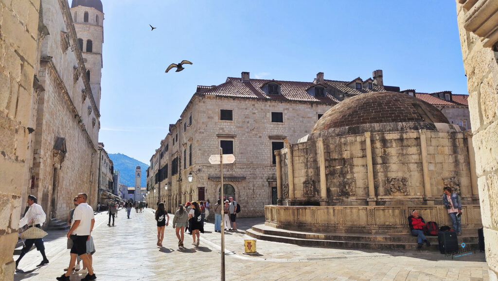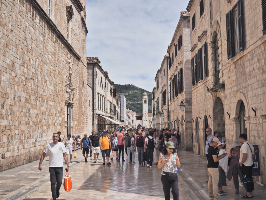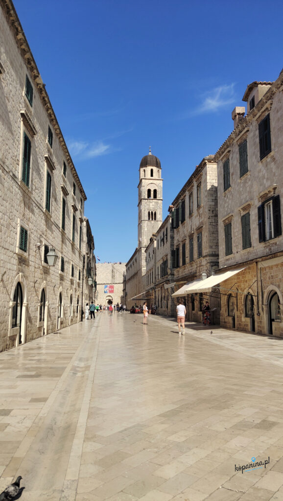To miejsce jest tak bardzo turystyczne, że nie da się mieć ciastka i zjeść ciastka. Jeśli liczycie na letnie spokojne popołudnie z kawą w dubrownickim restauracyjnym ogródku ze scenerią jak z romantycznego filmu to musimy Was rozczarować. Na ten sam pomysł wpadło tysiące osób. Nie ma co się dziwić, że w miejscach turystycznych w sezonie są też inni turyści. Będzie zatem pewnie zupa z ludzi zamiast kawy. I tu wkraczają kompromisy. Bo jesteśmy przykładem, że da się zwiedzać Dubrownik z przyjemnością. Dla porównania dwa zdjęcia Stradun, zrobione rano (ale nie o świcie, bez przesady) i wcześnym popołudniem. Jest różnica? Zatem jeśli chcecie zobaczyć Dubrownik bez tłumu, idziecie na starówkę albo rano, albo pod wieczór w czasie, kiedy nie ma jednodniowych turystów. Byliśmy i tak i tak, obydwie opcje polecamy.