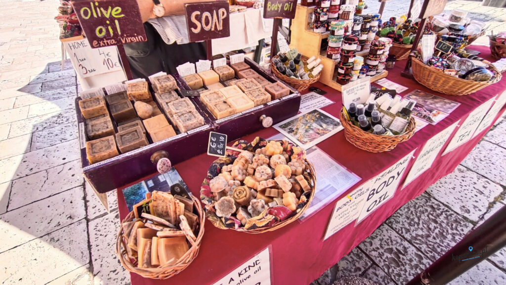 A w ich bliskiej okolicy trafiliśmy na uliczny market, gdzie kupiliśmy trochę pamiątek (tržište – Market Sq / Plaza Del Mercado). Z rozmów ze sprzedawcami dowiedzieliśmy się, że są to lokalne, ręcznie robione wyroby. Mydełka, słodycze, różne piękne drobiazgi.