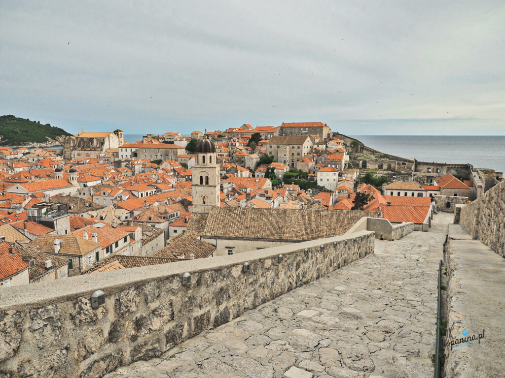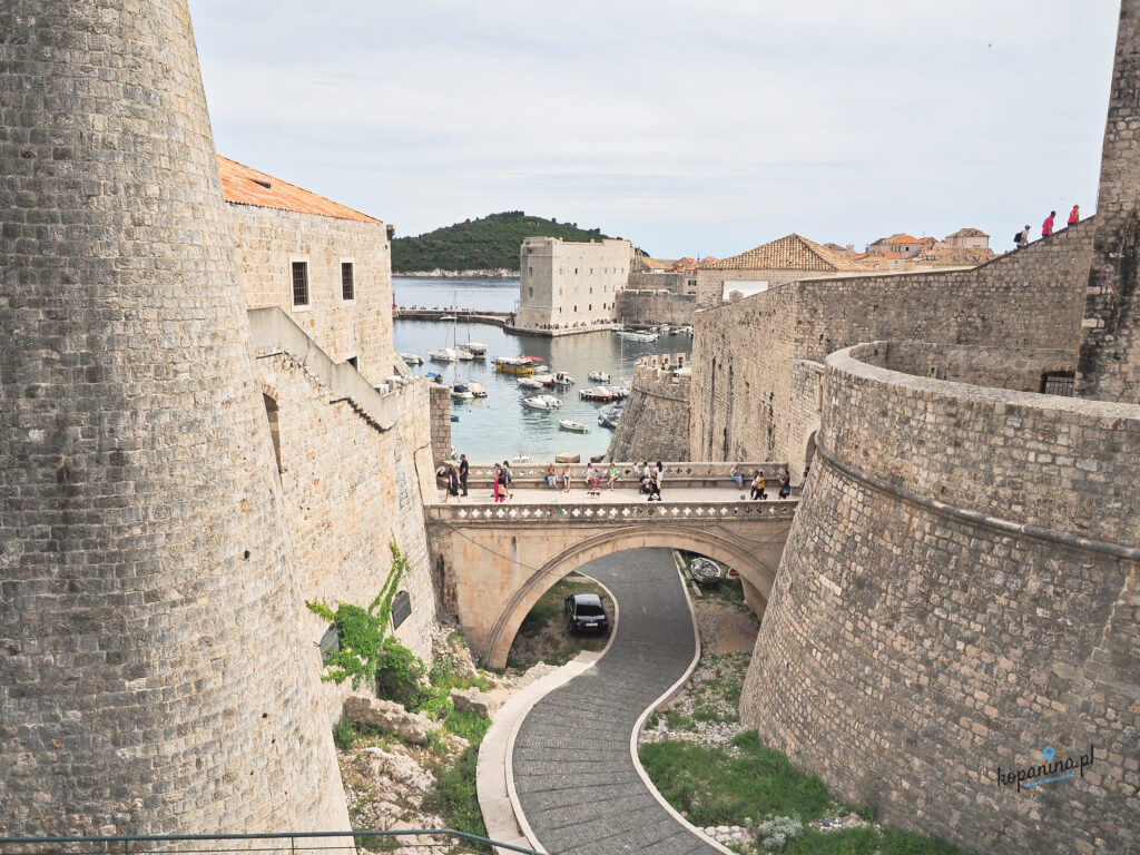 Mury Miejskie Dubrownika to coś, co naszym zdaniem koniecznie trzeba zobaczyć. Wejście jest bardzo drogie, nie ma co się czarować, ale warto. Bilety kupiliśmy wcześniej przez internet (ale można też kupić na miejscu przy wejściu). Nie wyrzucajcie ich, bo w połowie trasy w okolicy Starego Portu sprawdzano je nam ponownie. Na mury można wejść w kilku miejscach, jednak najbardziej popularne i najłatwiejsze do znalezienia jest wejście zaraz za bramą Pile. Ruch na murach jest jednokierunkowy, są znaki, więc się nie pogubicie. Obserwacja z góry miejsc, które widzieliśmy wcześniej na dole jest bardzo ciekawa. Krajobraz zmienia się w zależności w jakim miejscu murów jesteście. Od wody i okolicznych wysepek, po ludzi skaczących ze skał, Stary Port i cudowne dachy Dubrownika.