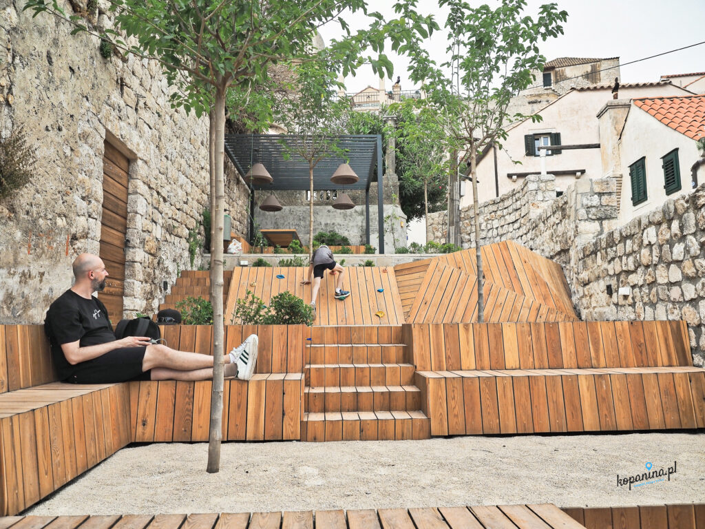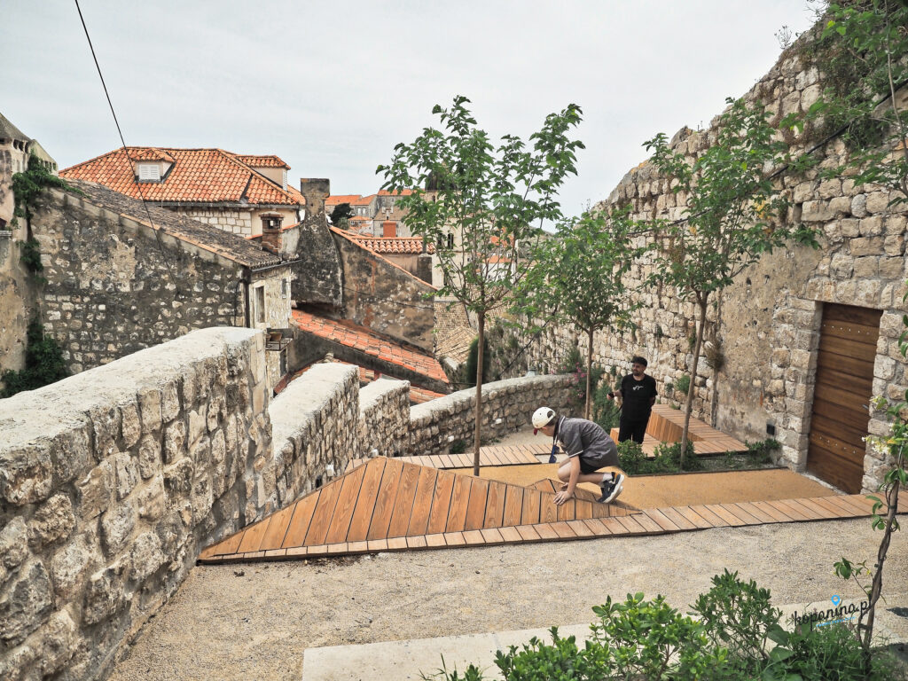 W historycznym centrum, wewnątrz murów miejskich najbardziej warto po prostu się zgubić i szukać klimatu Dubrownika. Dzięki temu znaleźliśmy mały skwerek, gdzie można było chwilę odpocząć w spokoju. W północno-zachodnim rogu, pod twierdzą Minčeta (na nią wejdziecie tylko z murów) jest bardzo ciekawy zakątek. Ogólnodostępne boisko sportowe i mały placyk (Stone Oasis w Google). Totalne zaskoczenie i zauroczenie. Zupełnie inny klimat niż na zatłoczonym Stradun.