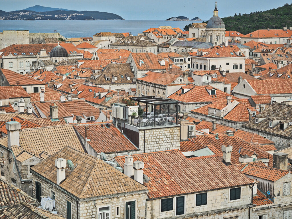 Warto też znać historię czerwonych dachów Dubrownika. To miasto historycznie wcale nie było czerwone. Można powiedzieć, że było białe (a w rzeczywistości po prostu jasne, beżowo-piaskowe). Jednak podczas wojny na Bałkanach Dubrownik został zbombardowany praktycznie w całości, ostało się niewiele budynków. Podczas odbudowy łatwiej dostępna była czerwona dachówka, i od tego czasu miasto już na zawsze zmieniło swoje oblicze. W kilku miejscach można zobaczyć kontrast pomiędzy starymi i nowymi dachami. Częściowo też na nowe dachy położono uszkodzoną starą dachówkę probując zachować dawny charakter dachów. Znając tą historię, odbiór tego miejsca jest zupełnie inny. Nic nie jest dane na zawsze, a wojna nie wybiera.