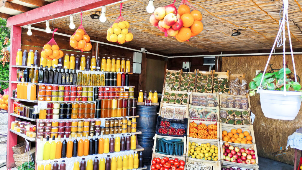 Wszystko było tak pięknie i zachęcająco wyeksponowane, że nie mogliśmy się oprzeć. Kupiliśmy pyszne soki, dżemy i po raz pierwszy spróbowaliśmy kumkwata. Ten malutki cytrus smakuje przedziwnie, kwaśno-gorzko-słodko. Je się go ze skórą i bardzo wciąga. To była miłość, po powrocie do Polski zamówiliśmy kolejną dostawę. Ten obszar Chorwacji to część typowo rolnicza, gdzie uprawia się warzywa i owoce które potem zaopatrują całą Chorwację.
