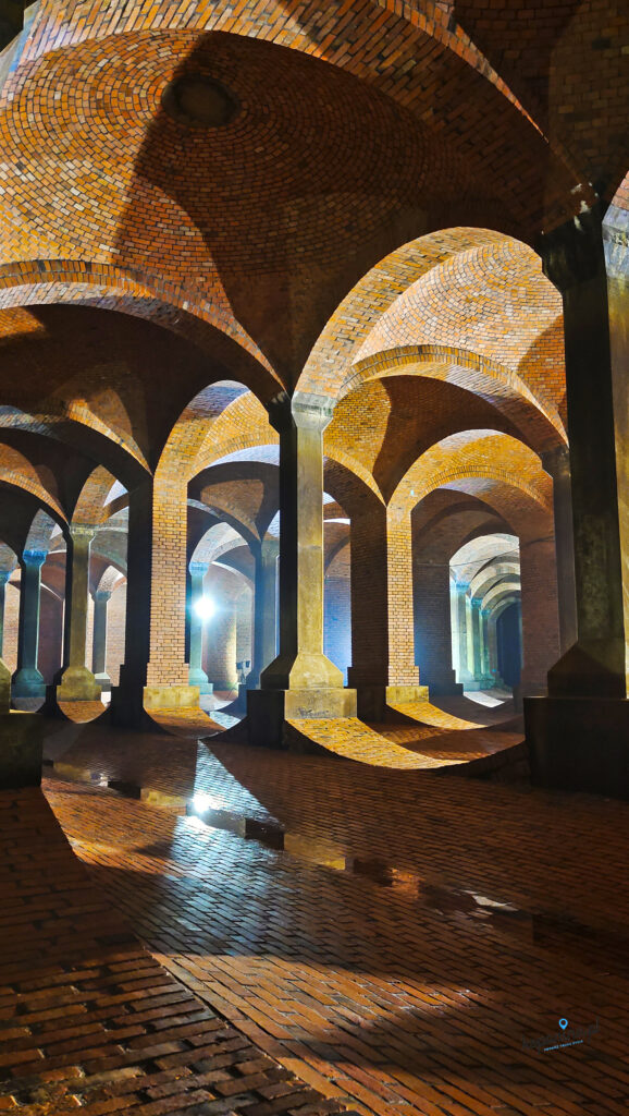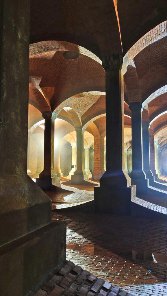 „Podziemna Katedra” to niesamowite miejsce. Cztery monumentalne ogromne (mają aż 60×60 metrów każdy) zbiorniki ze specjalnej wodoodpornej cegły. Dwa z lat 1934-1937, dwa wybudowane w latach 1949-1953. Zaprojektowane przez Williama Heerleina Lindleya, miały grawitacyjnie zasilać w wodę mieszkańców Łodzi. Różnica pomiędzy wzgórzem Stokowskim, na którym położone są zbiorniki, a najniższym punktem sieci wodociągowej wynosi około 100 metrów, dlatego taki system jest w ogóle możliwy i działa do dziś.